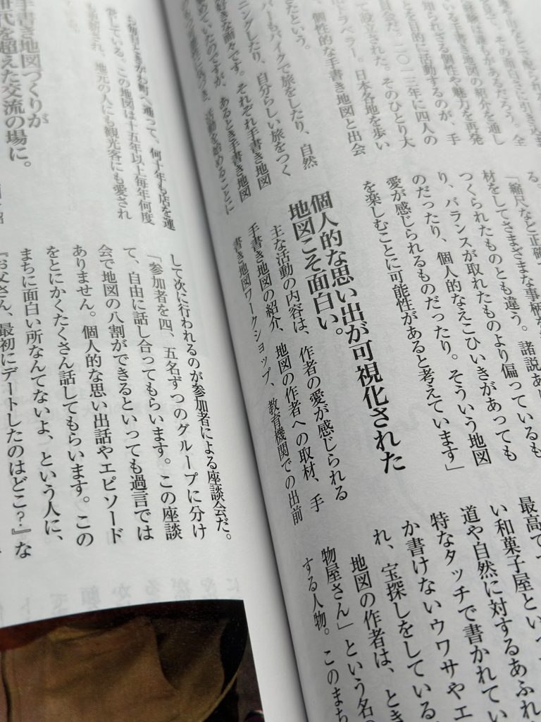 取材のときは、研究員・大内が手書き地図ワールドの魅力と事例について語り散らかしたのですが、とてもわかりやすく整理整頓して記事にしていただいたおかげで、ますます手書き地図の楽しさが伝わる内容になっています。編集部のみなさまに感謝感謝。